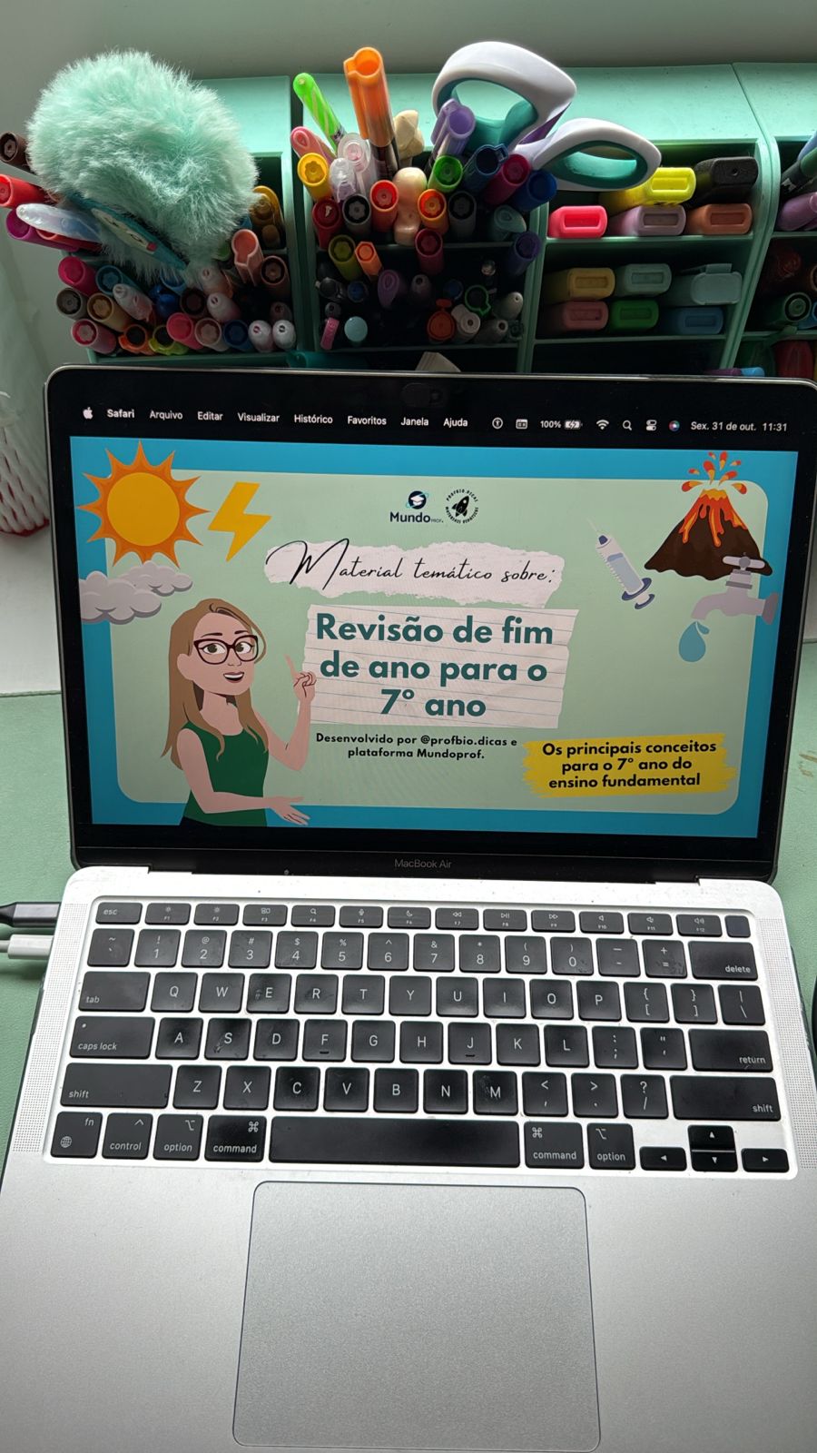 “O material em PDF com 29 páginas e 25 perguntas é uma proposta de revisão de conteúdo com o sétimo ano sobre as matérias trabalhadas como eles no decorrer do ano letivo. O material é acompanhado por um slide de 79 páginas em PPTX e em PDF com um jogo interativo usando as mesmas perguntas da atividade. O PDF está disponível nas versões colorida e preto e branca e ambos os arquivos com instruções para professores e uma sugestão de gabarito.